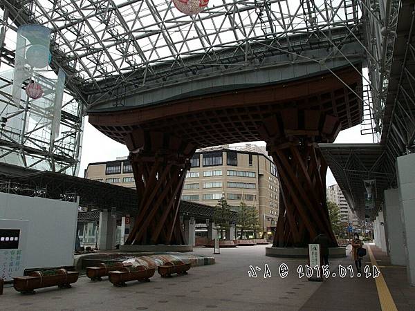 不知道哪邊才是 JR 金澤站東口?看到這個金澤的地標鼓門就是啦!從金澤站東口出來向著鼓門,左邊就是公車站牌們,要搭的濃飛巴士就在 2 號乘車處。